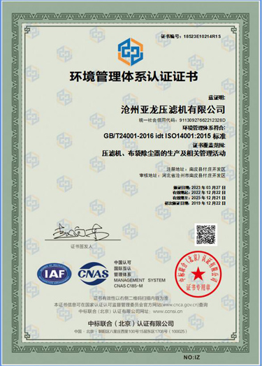 環(huán)境管理體系認(rèn)證證書-