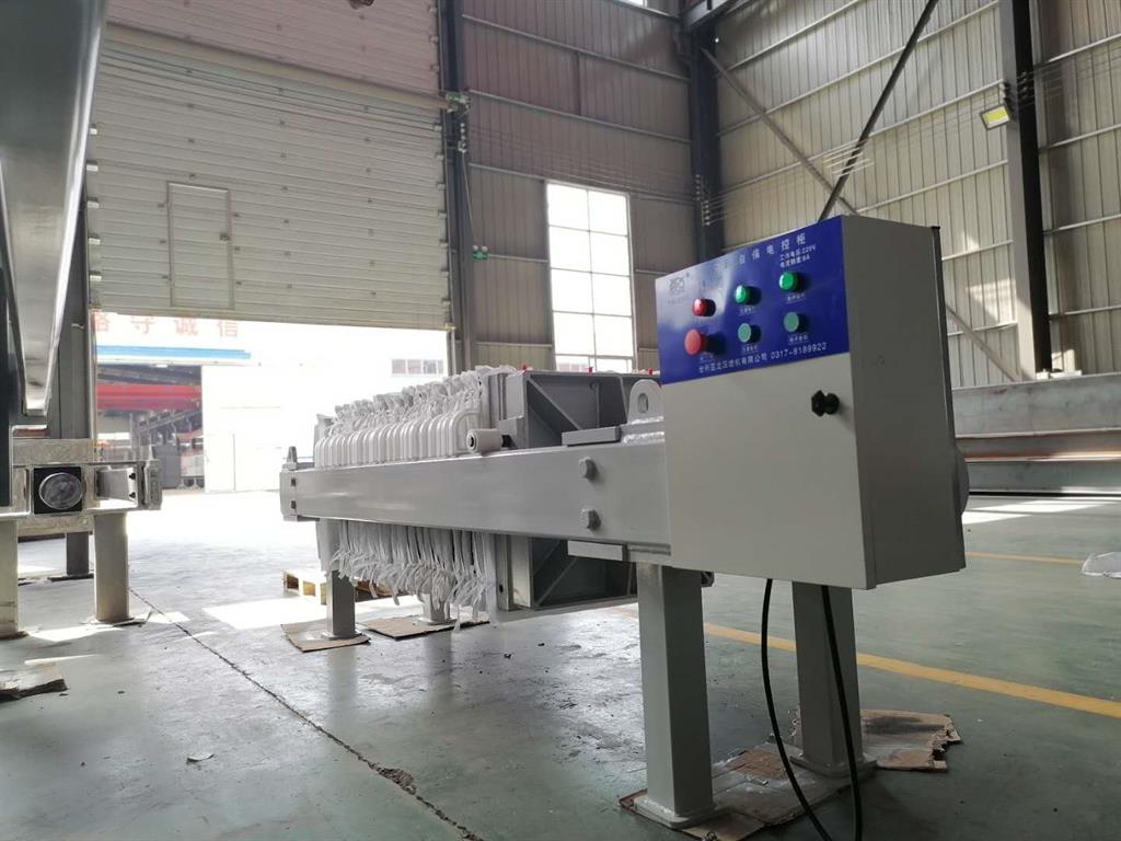 安裝軌道盒托架,以及上、下軌道盒。 對于隔膜壓濾機傳動部分的安裝,應(yīng)包括:鏈輪、鏈條、油馬達(dá)、拉鉤盒等。在安裝連接鏈條、拉鉤盒時,應(yīng)使兩拉鉤盒緊靠軌道盒端部定位板,應(yīng)兩拉鉤盒同步精度<4mm。 將濾板吊裝至主梁道軌上,定位把手在同一側(cè)。再安裝濾布,上好濾布壓圈(縫制濾布不用壓圈)。調(diào)整軌道盒高度,濾板把手底面與上軌道盒底面距離為,從而讓其達(dá)到拉板工作穩(wěn)定可靠為準(zhǔn)。