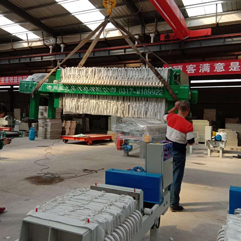 板框壓濾機(jī)對于濾渣壓縮性大或近于不可壓縮的懸浮液都能適用。適合的懸浮液的固體顆粒濃度一般為10%以下,操作壓力一般為0.3~1.6兆帕,特殊的可達(dá)3兆帕或_高。過濾面積可以隨所用的板框數(shù)目增減。板框通常為正方形,濾框的內(nèi)邊長為 200~2000毫米,框厚為16~80毫米,過濾面積為1~1200㎡。板與框用手動螺旋、電動螺旋和液壓等方式壓緊。板和框用木材、鑄鐵、鑄鋼、不銹鋼、聚丙烯和橡膠等材料制造。
