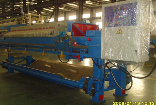 4.濾板分料管道中的過濾液_通過上面的方式被分到各塊濾板與板框組成的濾腔中,與濾布接觸,在強大壓力的趨勢下,實現(xiàn)過濾目的.